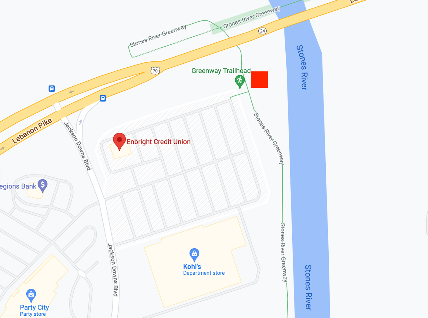 Park at Stones River Greenway Hickory Hill Connector Trail head - Walk down the intersection.
